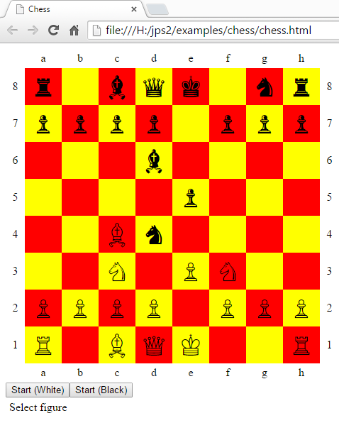 Plik Gui.scala: def columnLabels = { val row = document.createElement("tr") row.appendChild(labelCell("",25,25)) for (c <- 1 to 8) row.appendChild(labelCell((c + 'a' - 1).toChar.toString,50,25)) row }